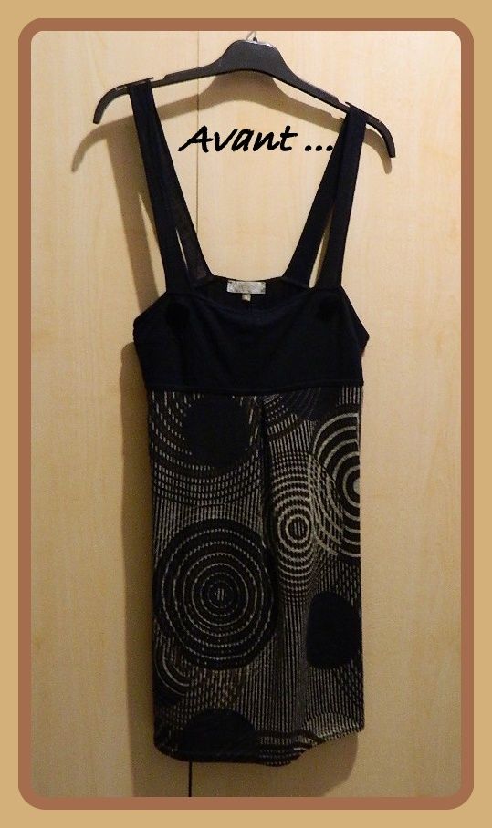 Tissus : jersey noir venant des Tissus du Renard (1m à 8,90) et jersey imprimé (vêtement donné)